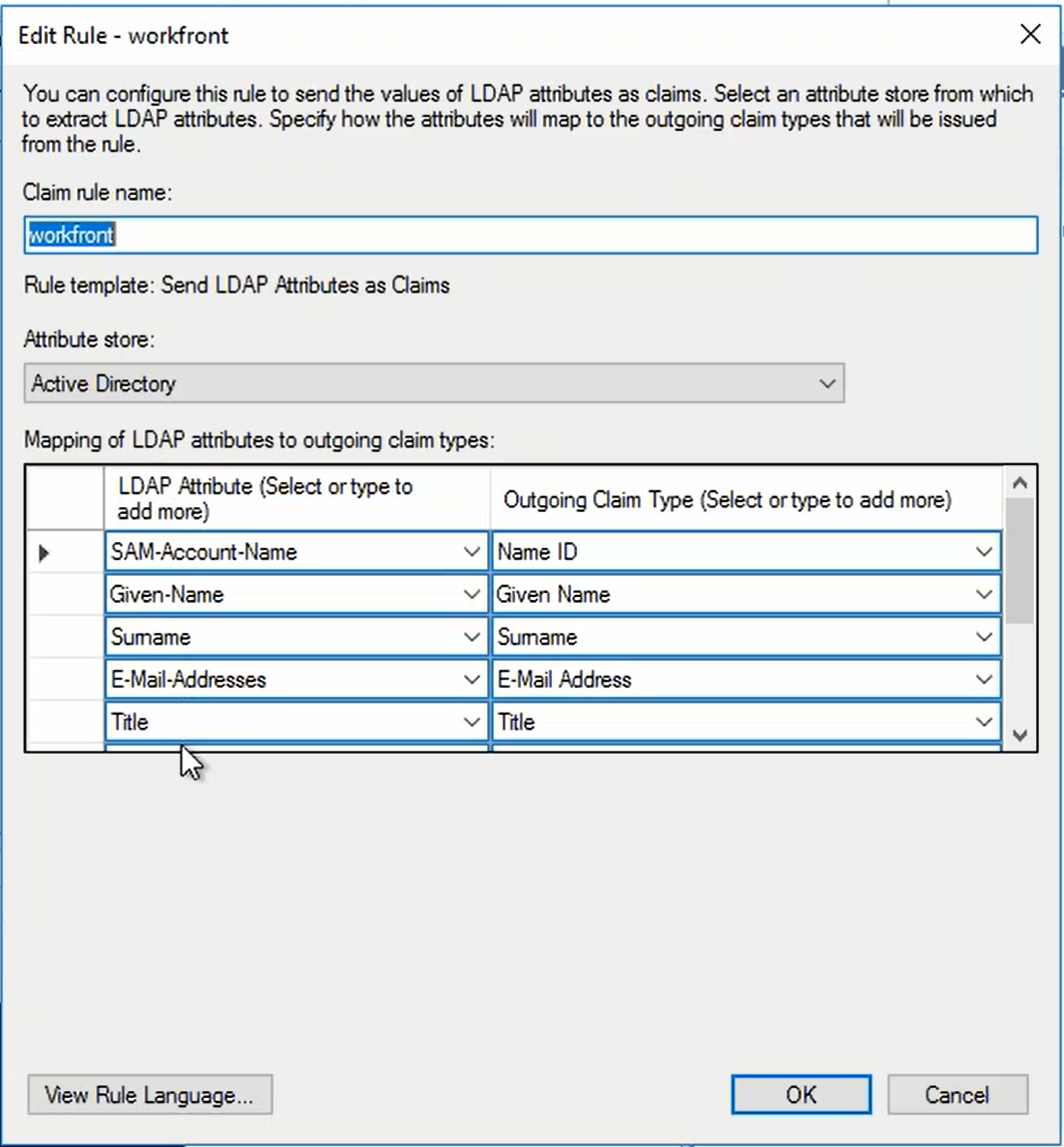 So, this is the process: AD Attribute → SAML Attribute → Claims Provider Attribute → Relying Party Attribute