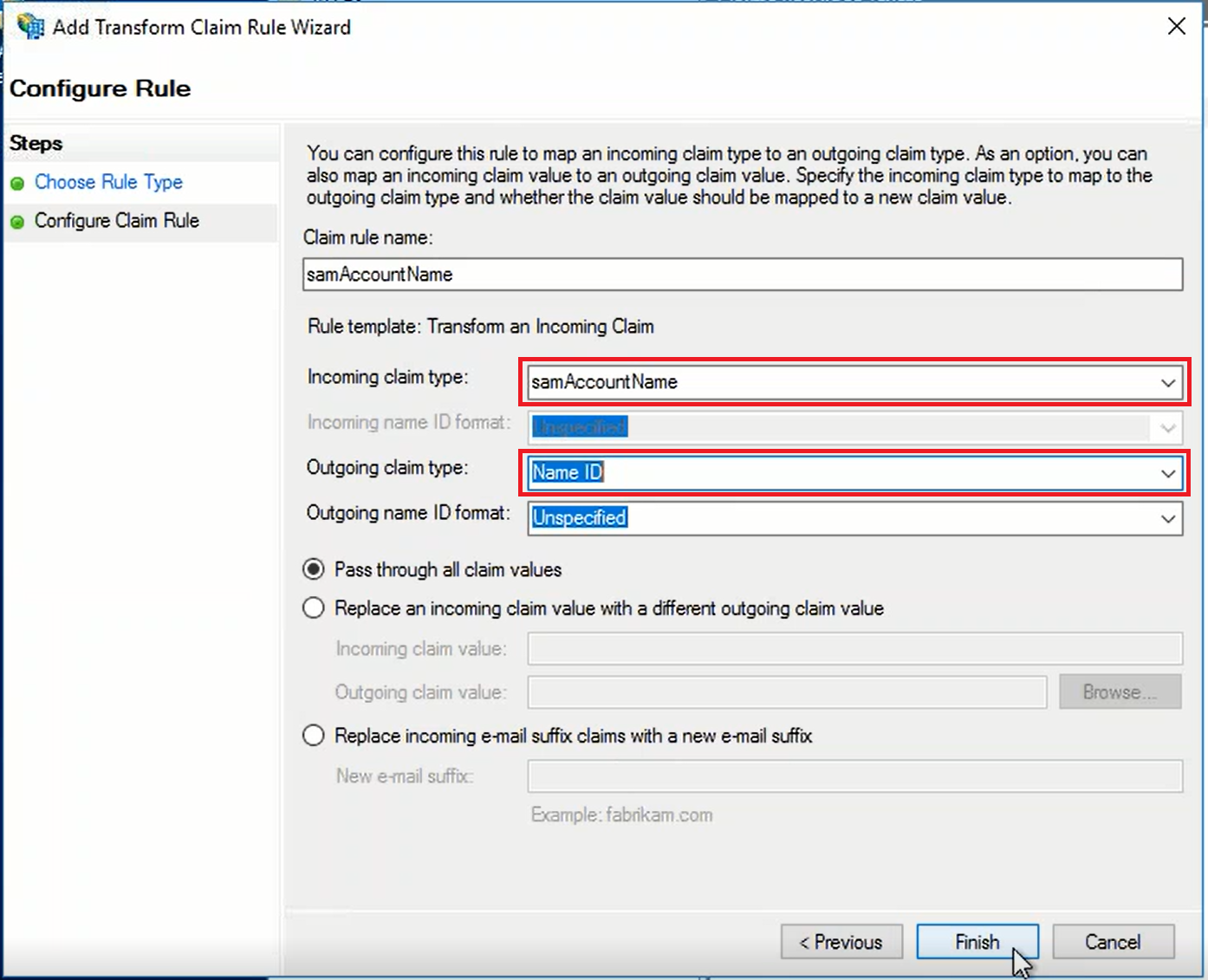 - SAML Attribute → Claims Provider Attribute: In ADFS, the Claims Provider receives the attribute, i.e. "samAccountName". It transform this incoming claim to an outgoing "Name ID" attribute