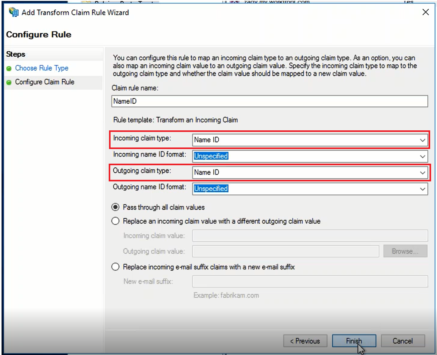 - Claims Provider Attribute → Relying Party Attribute: In ADFS, the Relying Party receives the attribute, i.e. "Name ID". It transform this incoming claim to an outgoing "Name ID" attribute