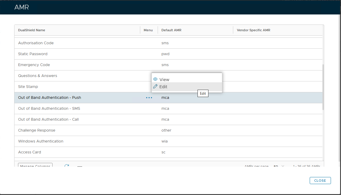 Click the context menu of "Out of Band Authentication - Push" and select "Edit"