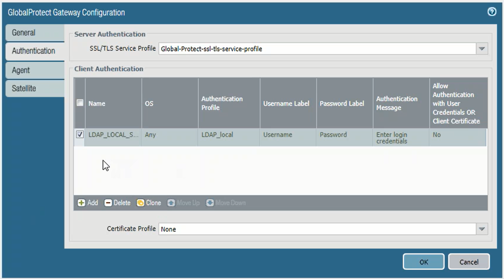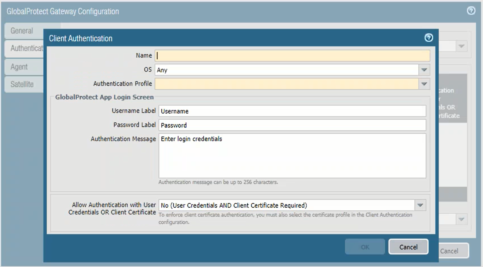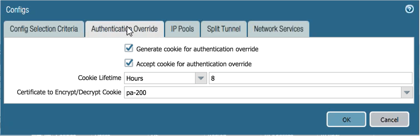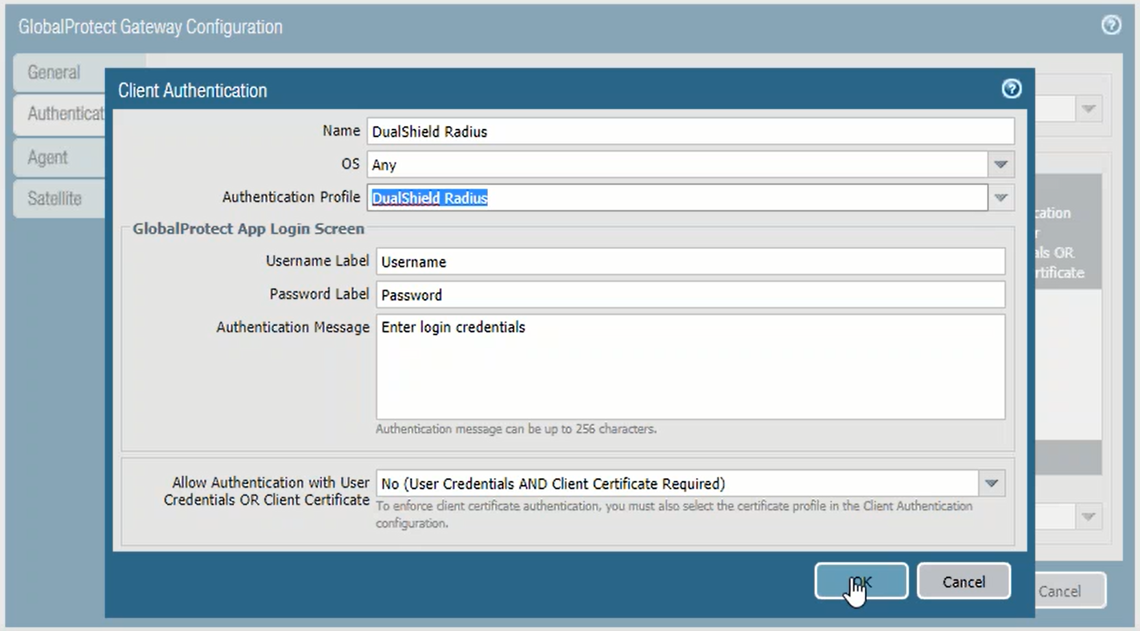 Click OK (twice if you also enabled authentication override cookies) to save the GlobalProtect Gateway settings.