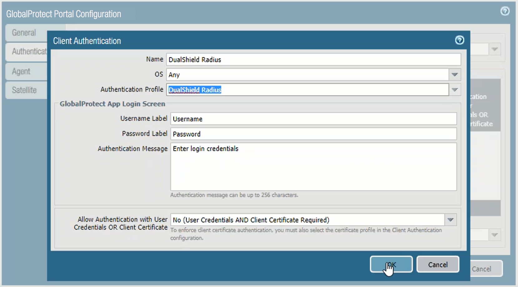 If your organization would like to protect the GlobalProtect Portal with DualShield two-factor authentication, then compete the steps below.