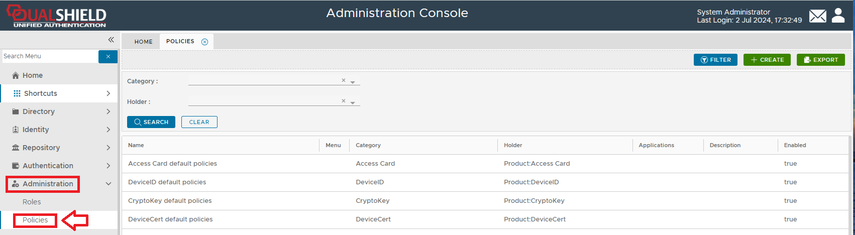 In order to create (or edit) a computer logon agent policy, we will first need to open the management console and navigate to "Administration | Policies";
