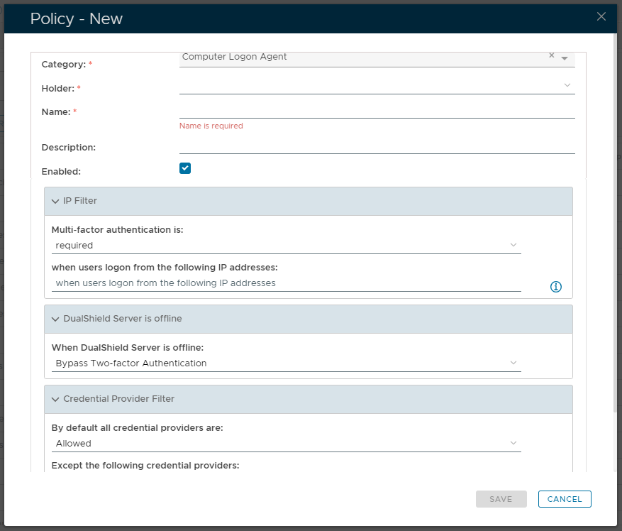 - DualShield Server is offline - specify what actions to take if the agent is unable to contact the DualShield server,
