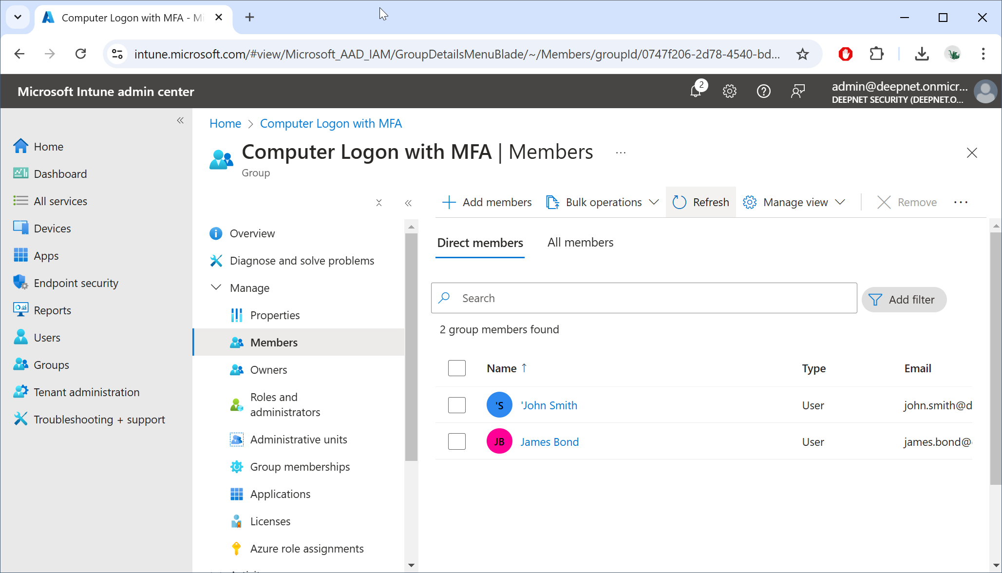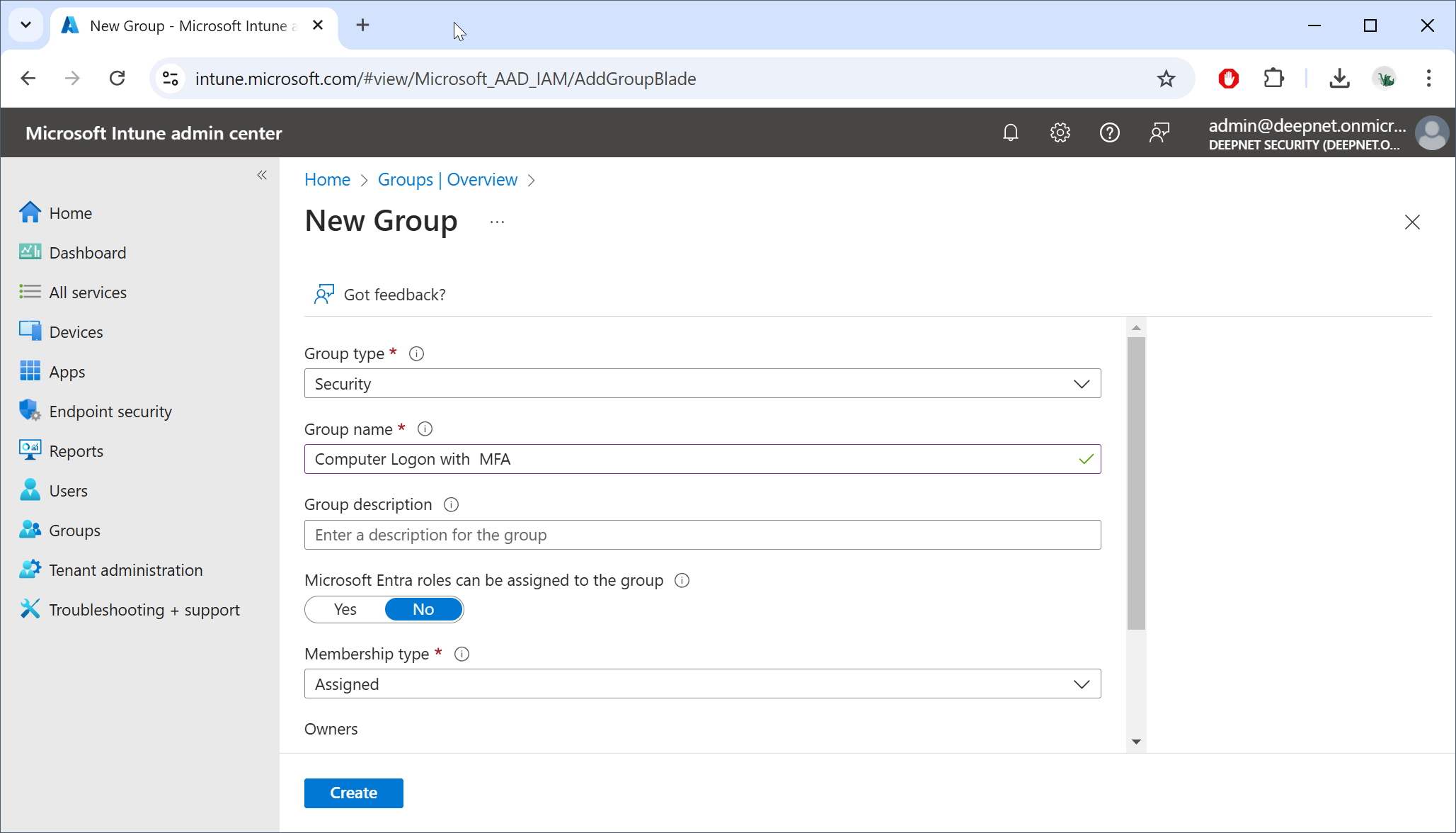 You might not want to enable MFA on Windows logon for all users in your organization, at least not at the initial stage. The recommended practice is to create a user group in your Intune, then enable Windows Logon MFA on this group only.