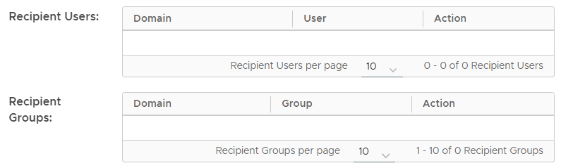 At the "Domain" prompt specify the domain of the user, then at the "User" prompt type in the users' name then click , and the specified user will be added to the list of recipients that the notification will be sent to;
