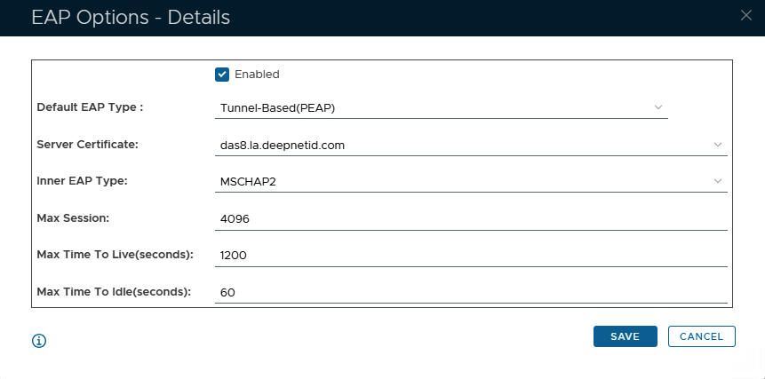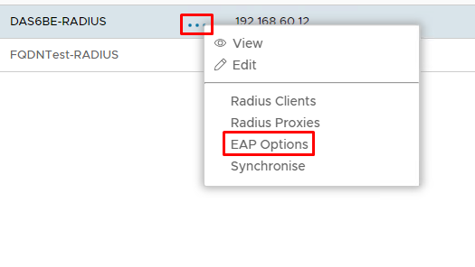 Click on the corresponding to the RADIUS Server and select EAP Options