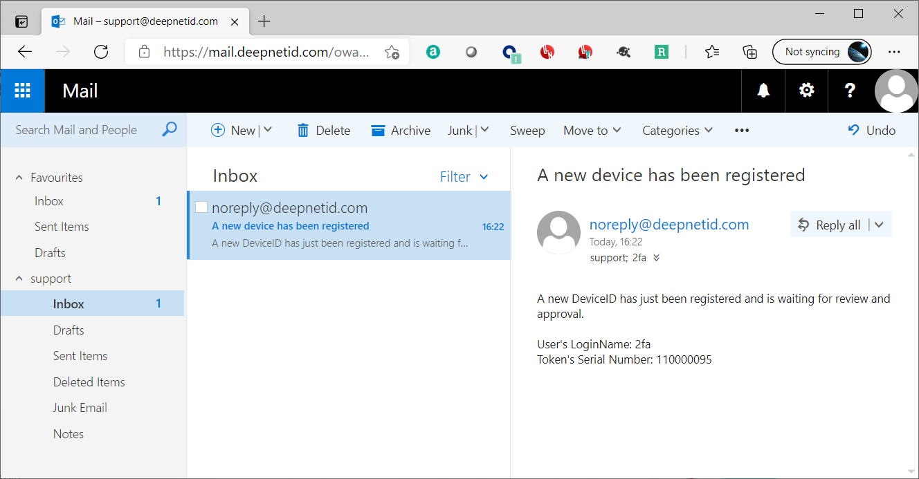 A user has just registered a DeviceID below that is waiting for approval. Domain Name: [[domainName]] LoginName: [[loginName]] Token Name: [[tokenName]] Token Serial Number: [[tokenSerial]]
