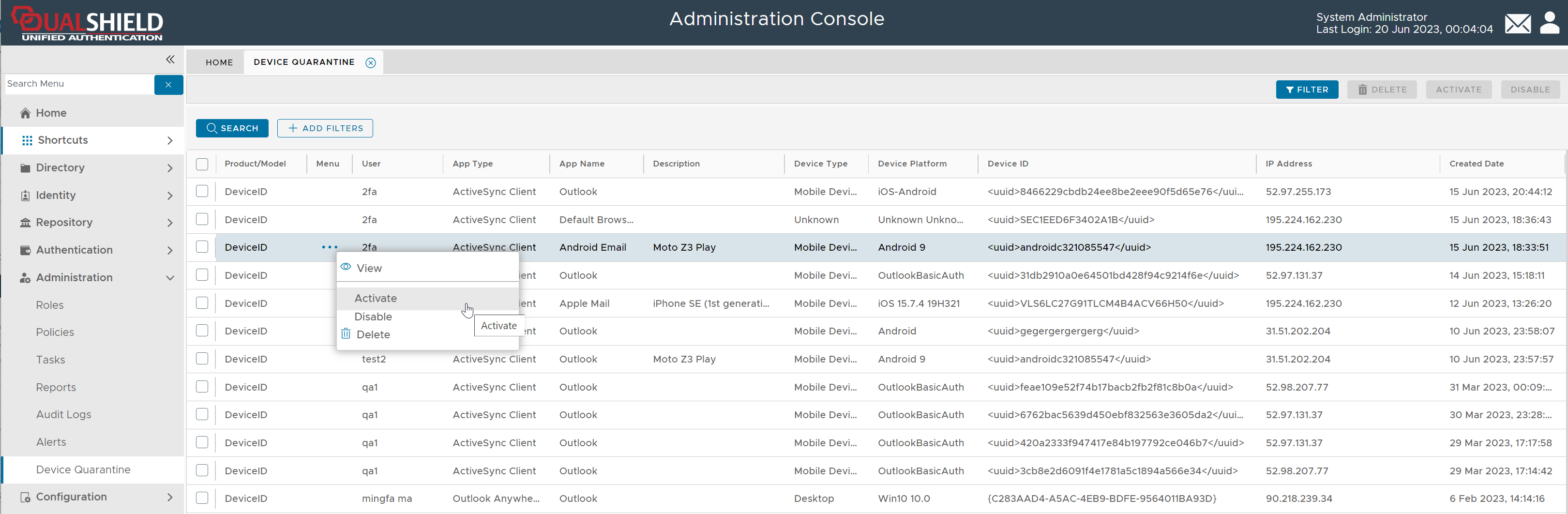 In the Admin Console, navigate to Administration \ Device Quarantine