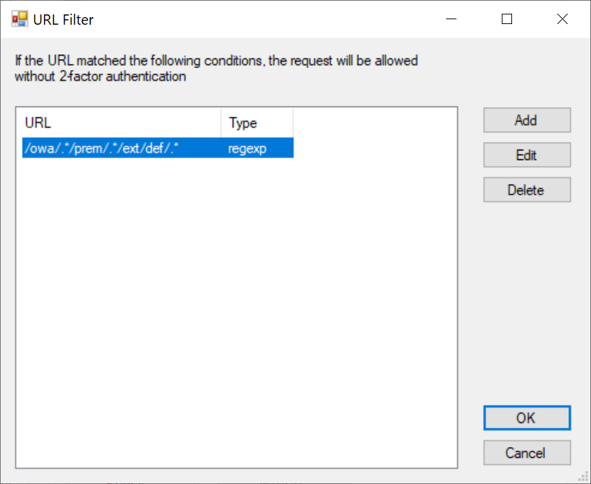 In the "URL" box enter "/owa/.*/prem/.*/ext/def/.*"