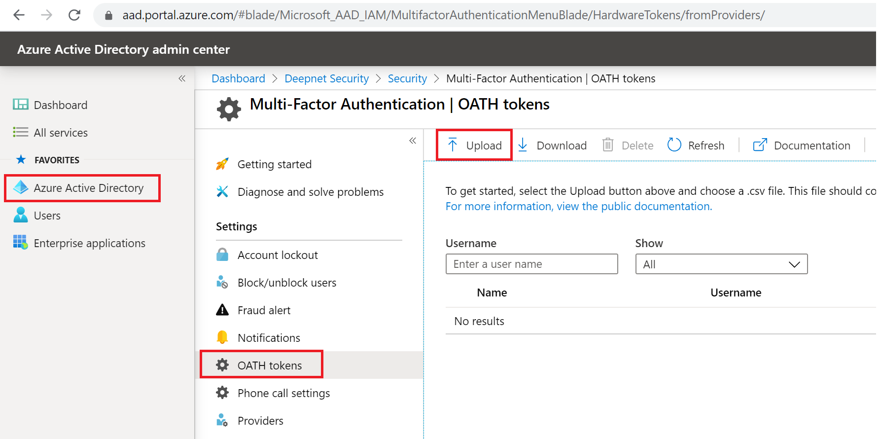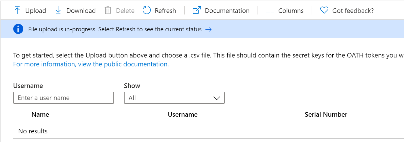 Azure MFA requires one extra information to be added into the CSV file: the user principal name (UPN) of each token. Therefore, you MUST edit the CSV file in the text editor and add an UPN to each of the tokens, as the example below shows.