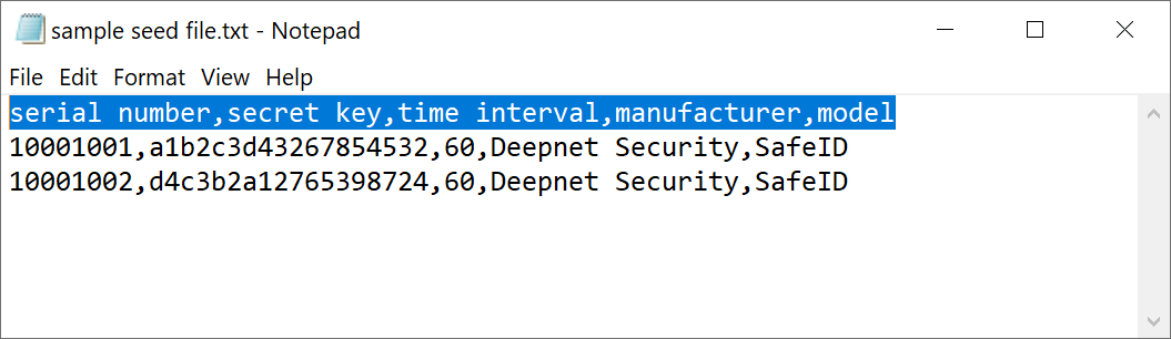 *Please note that the above seed file is only an example. If you have not received the seed file of your tokens, please contact your reseller or Deepnet Security.