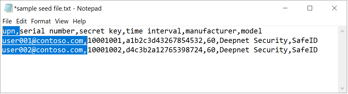 user001@contoso.com,1234567,1234567890abcdef,60,Deepnet Security,SafeID