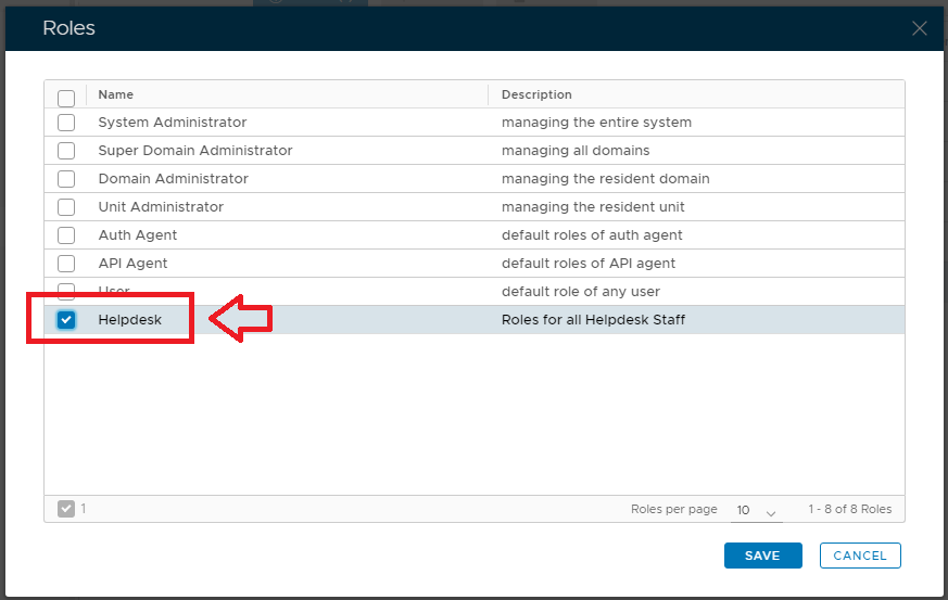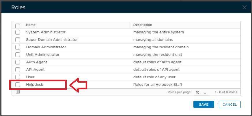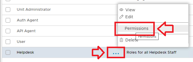 The helpdesk role can be applied to users by navigating to "Directory | Users", left clicking on the context menu of a user and selecting "Roles";