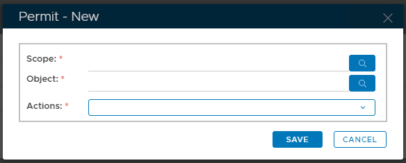 To create a new permit for the role, then click on the "+ ADD" button, and a new window will now open titled "Permit – New";