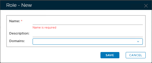 The "Domain" field is the so-called Managing Domain. If a role has managing domains, then the role can only be managed by administrative users in the managing domains who have the right to manage roles. If a role does not have managing domains, then the role can be managed by all administrative users who have the right to manage roles.