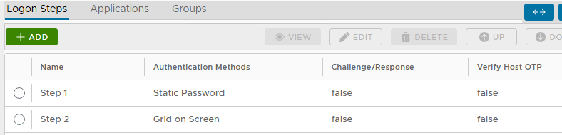 To enable Grid-on-Screen Logon method, the System Administrator needs to add the necessary authentication method in to the Application's Logon Procedure. Like follows: