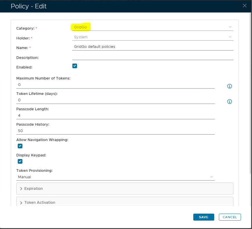 This policy provides options that control GridGo Authentication (an on-demand, on-screen security grid that is delivered to the user’s logon screen in real time).
