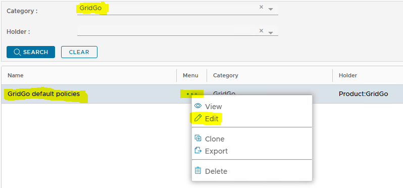 Also, the administrator might wish to refine the associated policy named "GridGo":