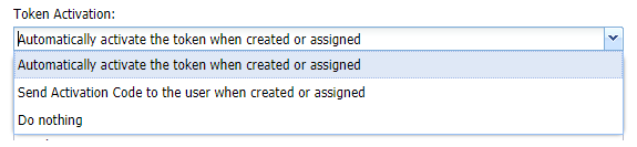 This option allows the system administrator to determine the action to be taken when a token is created or assigned to a user.