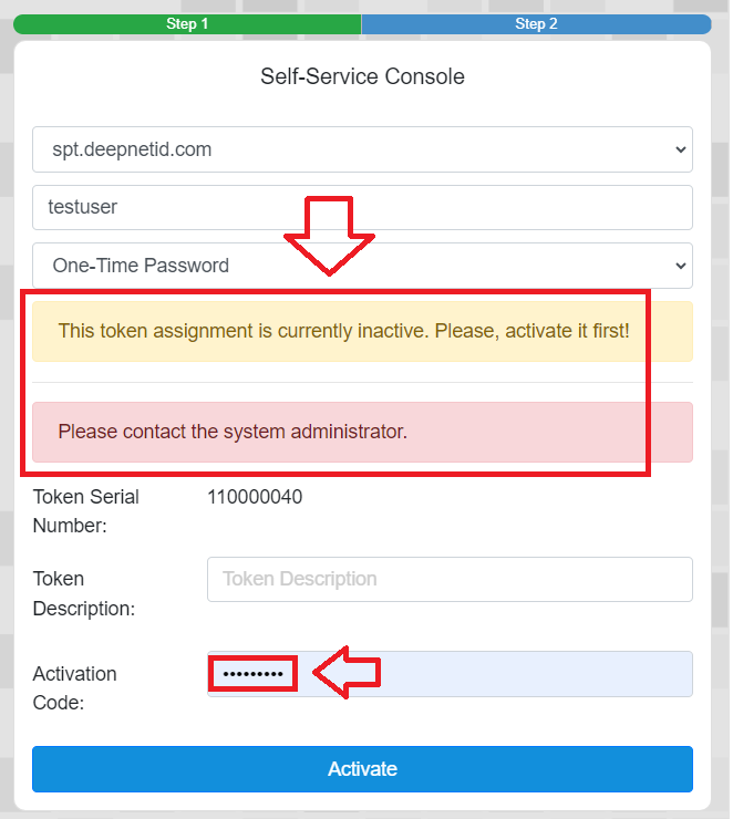 Send Activation Code to the user when crated or assigned The token is not activated after it is created or assigned, and not usable until it is activated by the user. DualShield will automatically send an Activation Code to the user via the specified Message Channel.