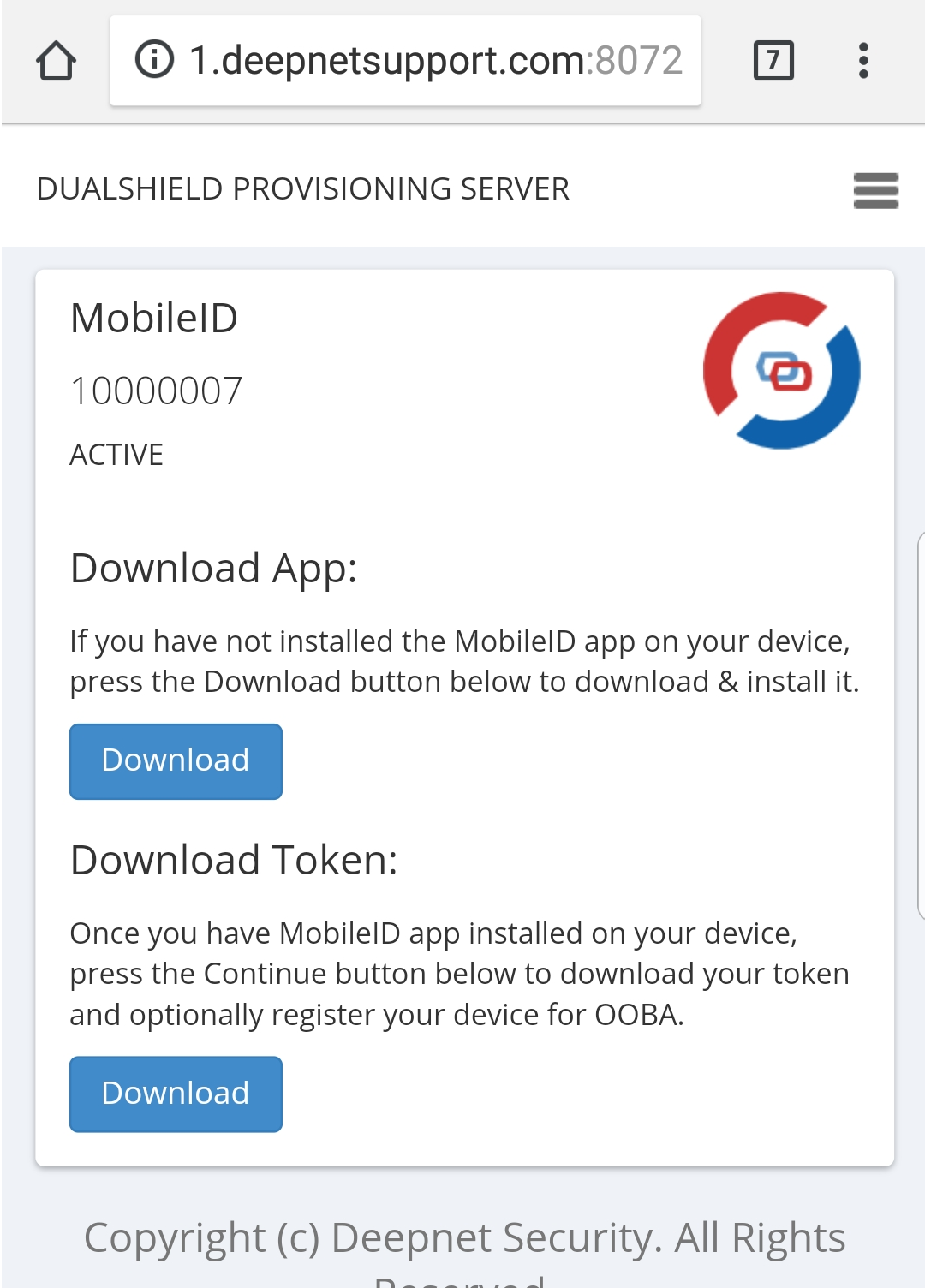 The token can be manually created by the system administrator for the user using the DualShield Management Console or manually created by the DualShield Server if the MobileID's policy is set up to automatically provisioning tokens to users.