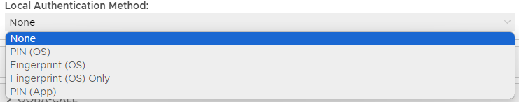Fingerprint (OS) Operating system based fingerprint authentication is required before the OOBA Push message can be confirmed (currently only apple fingerpirnt is supported).