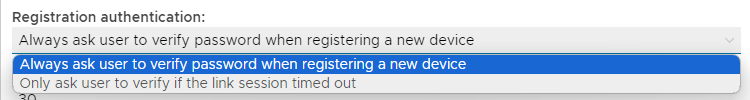 This option allows the system administrator to either force the user to verify their password when registering a new device, or only ask the user to verify if the link session timed out.