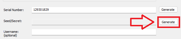 The data included in the above example will need to be replace with the serial number and seed data generated by the tool.