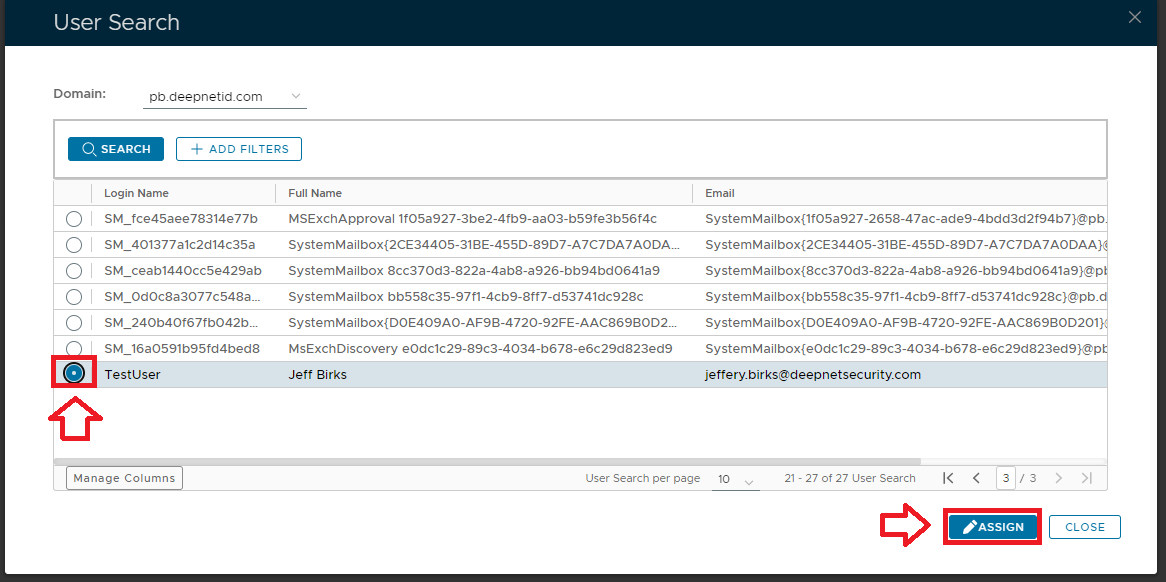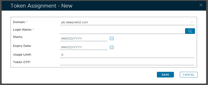 A new window will now open titled "Token Assignments", click on the button and select the domain that contains the user that we will assign the token to;