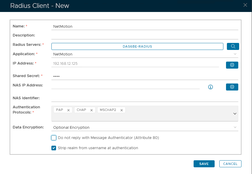 Radius ServersSelect the Radius Server(s) you have bound the application to. (See earlier step) *