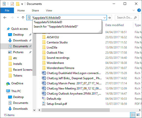Open a window, and enter the following folder address "%appdata%\MobileID";