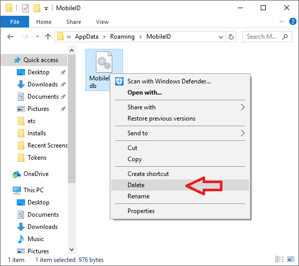 Prior to deleting the file ensure that the Windows MobileID application is fully exited.