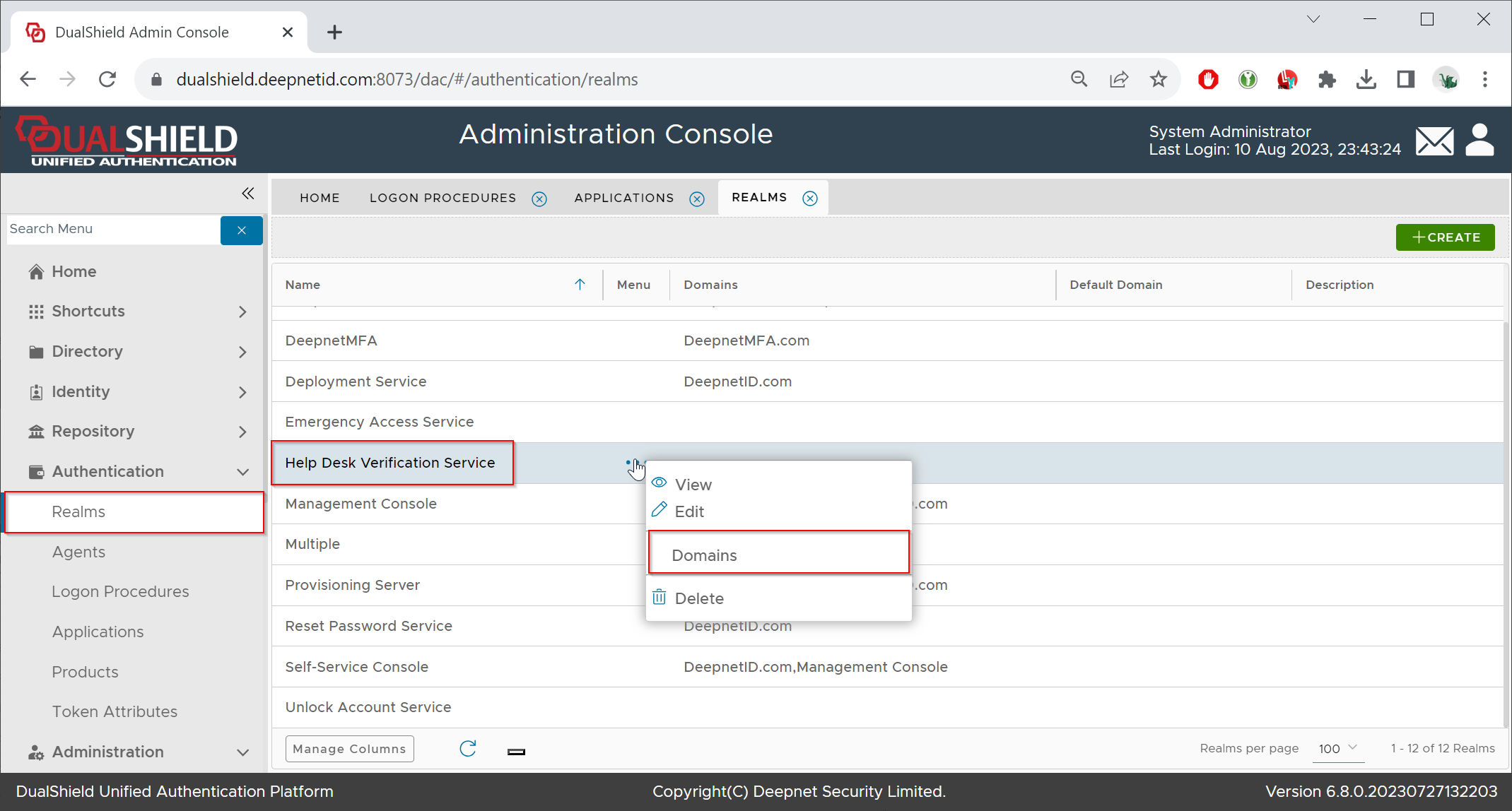 If you included the Help Desk Verification Service in the installation of your DualShield server, then the following components with the same name "Help Desk Verification Service" will be automatically created in the MFA server: