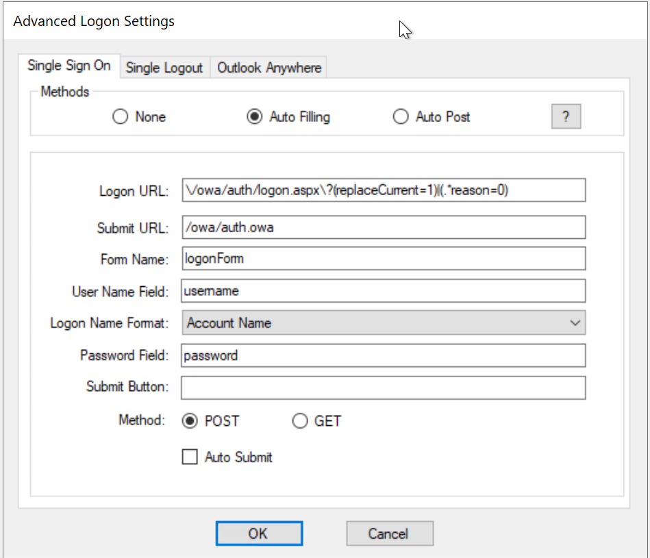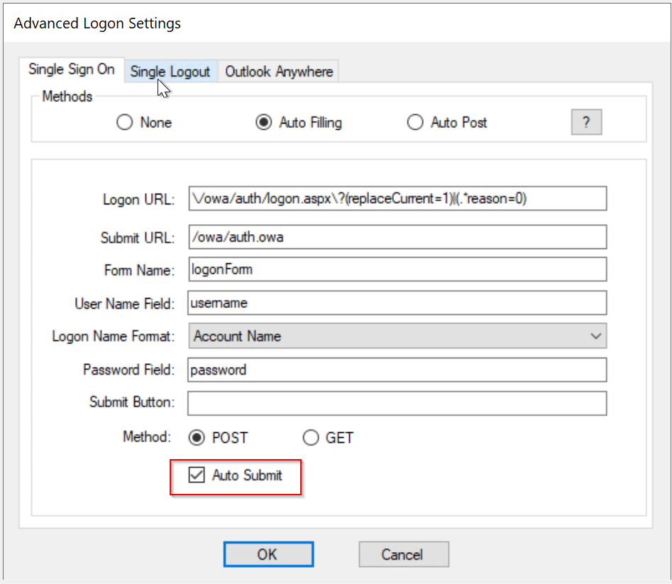 Between Auto-Filling and Auto-Post options, Auto-Post is preferred as it is easier to set up and quicker in performance. However, some IIS web servers have such restrictions that it is not possible to enable Single Sign-On by Auto-Post