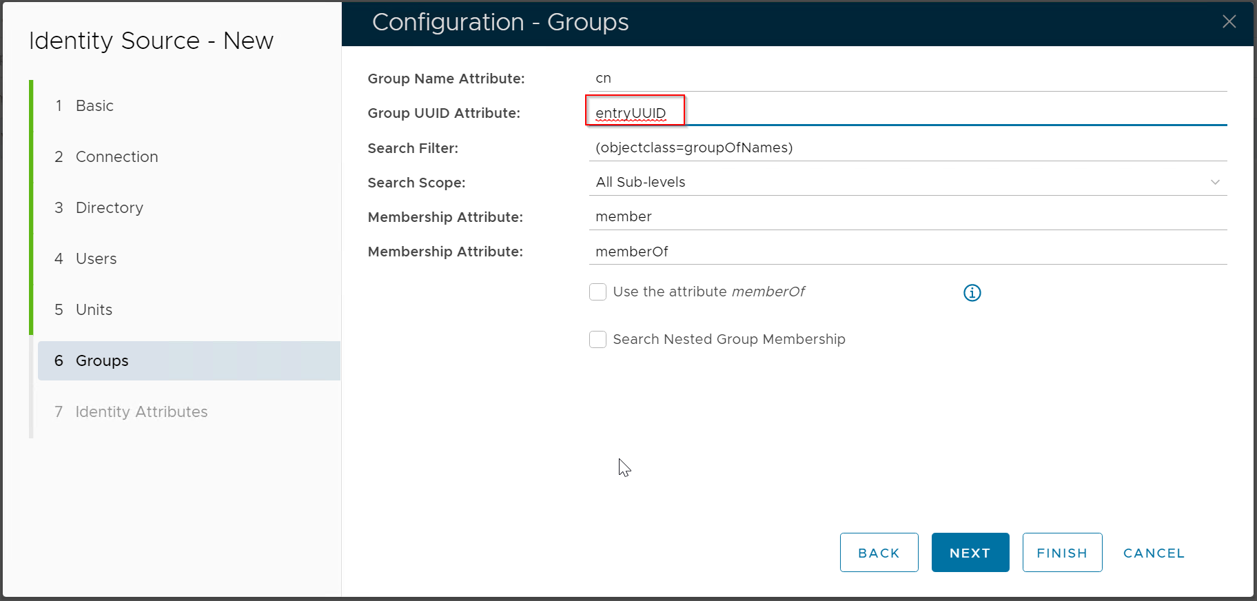 | Change the value of Group UUID Attribute to "entryUUID" | |