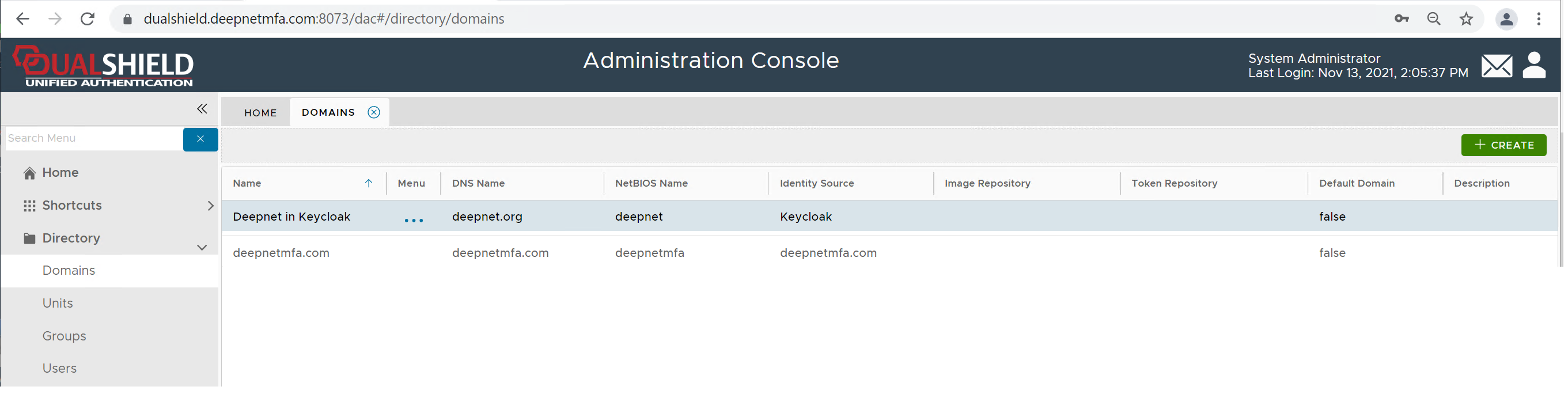 Navigate to "Directory > Domain", click the "Create" button on the toolbar