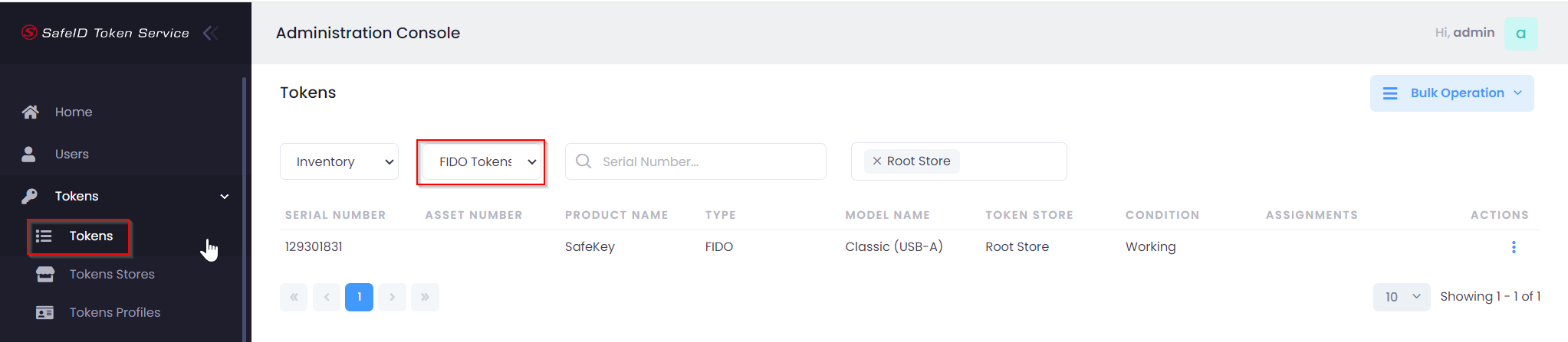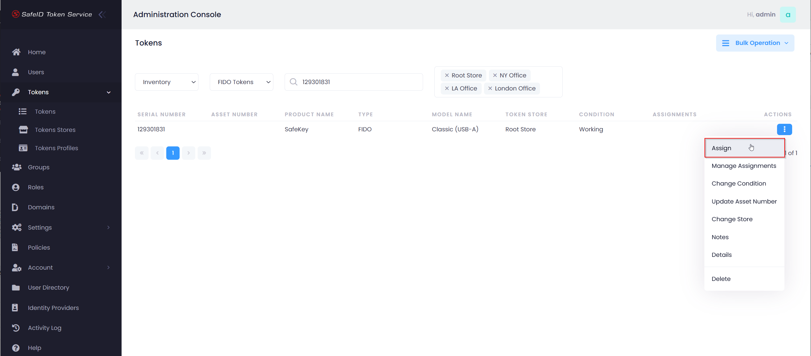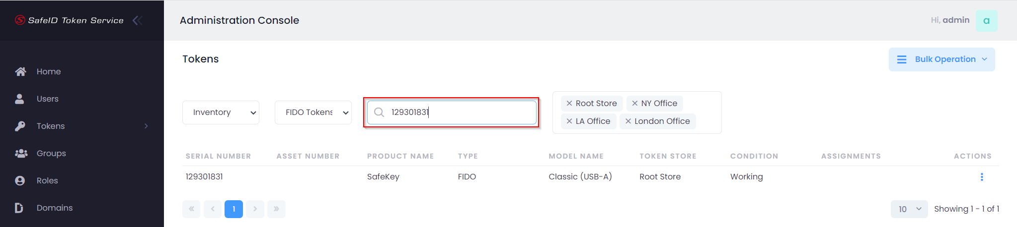 Find and locate the FIDO key that you want to assign to a user, e.g. S/N 129301831