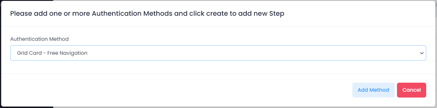 Select the authentication method from the list, e.g. "Grid Card - Free Navigation"