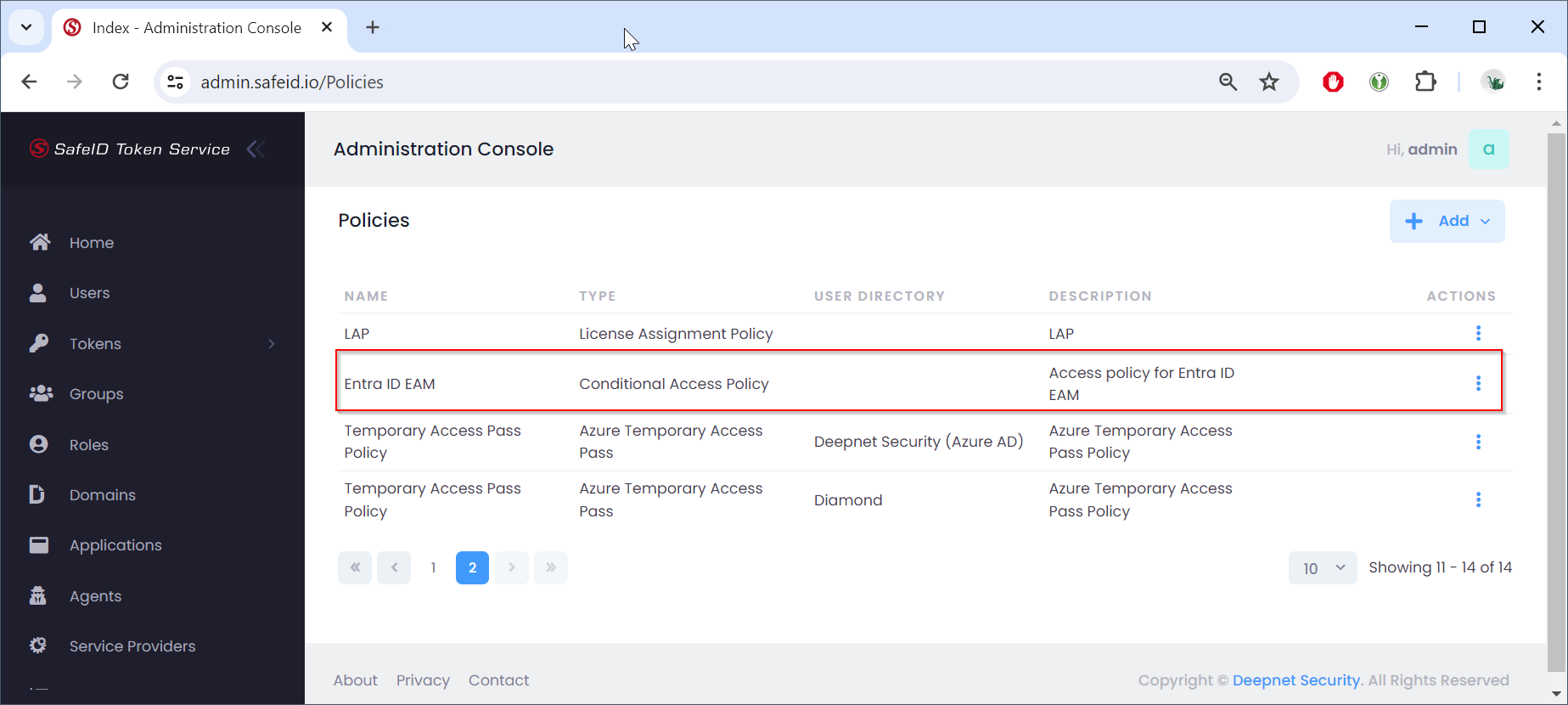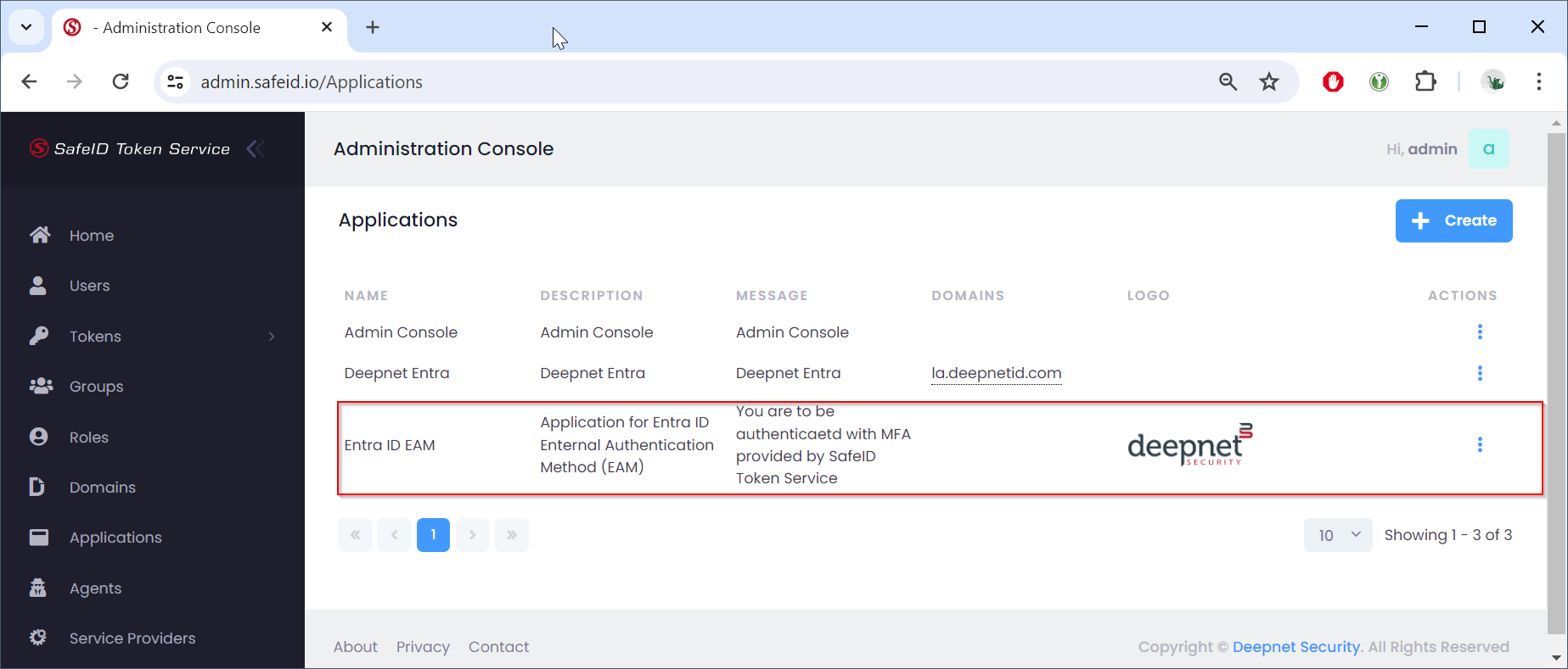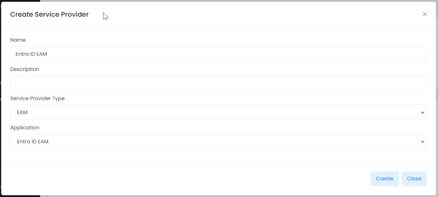 Select the application to be connected with the service provider, e.g. "Entra ID EAM"