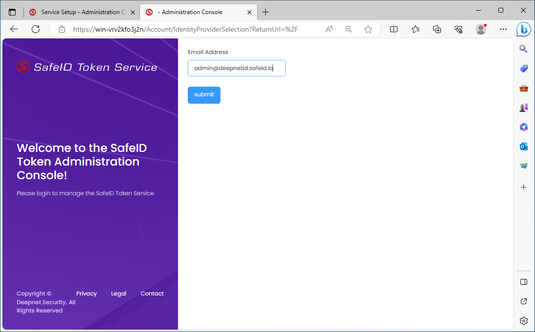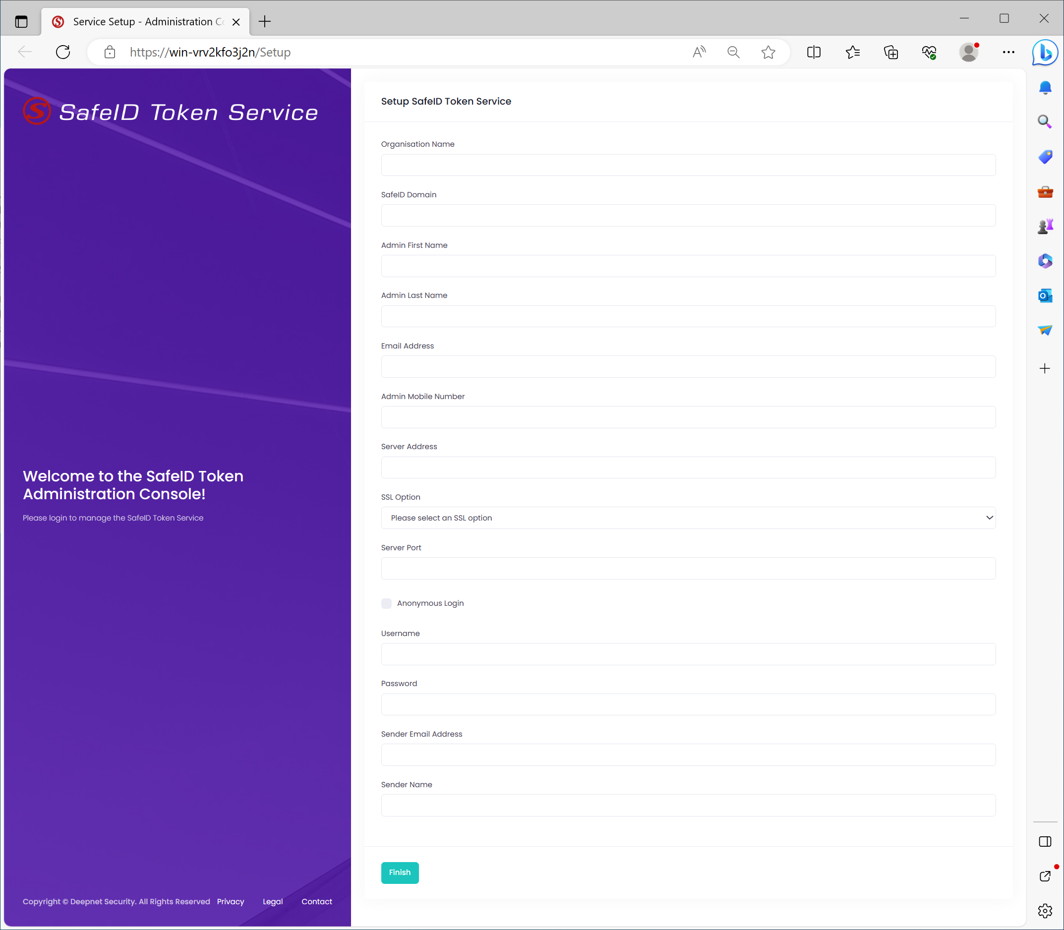 As the SafeID Admin Console will be accessed by your admin users only, you can either provide an FQDN (Fully Qualified Domain Name) as its hostname, or you can use the local machine name as its hostname.