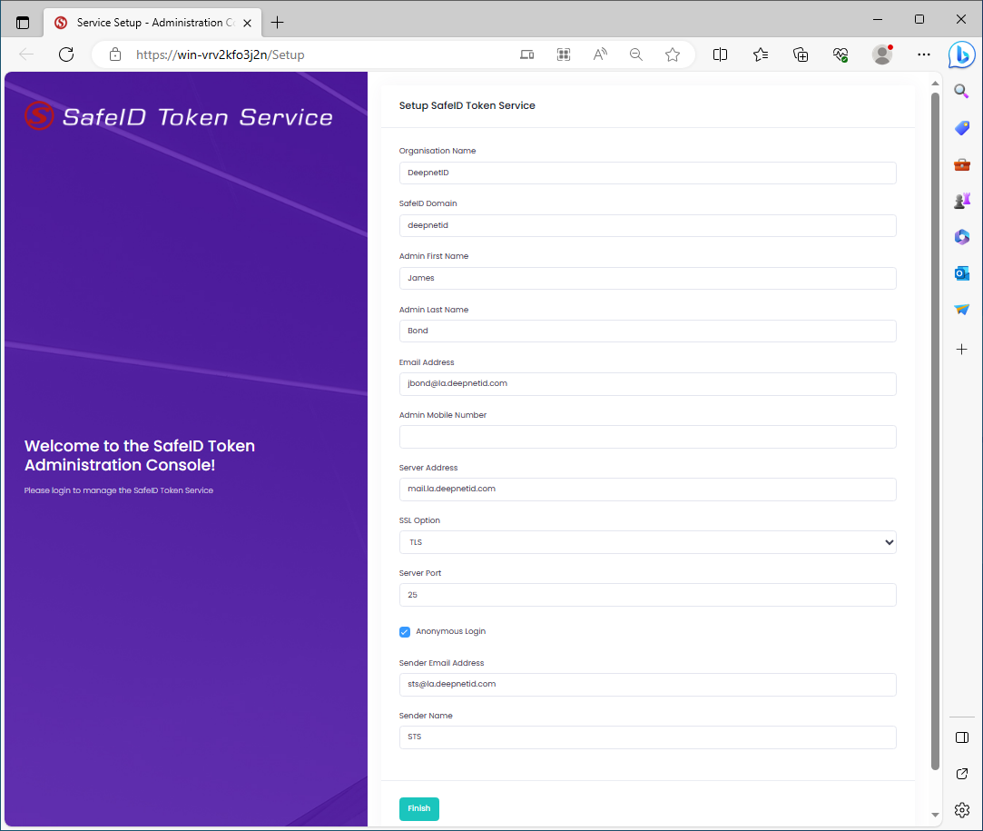 The SafeId Token Server also needs to be connected to your email server, so that it can send notification emails to the administrators.