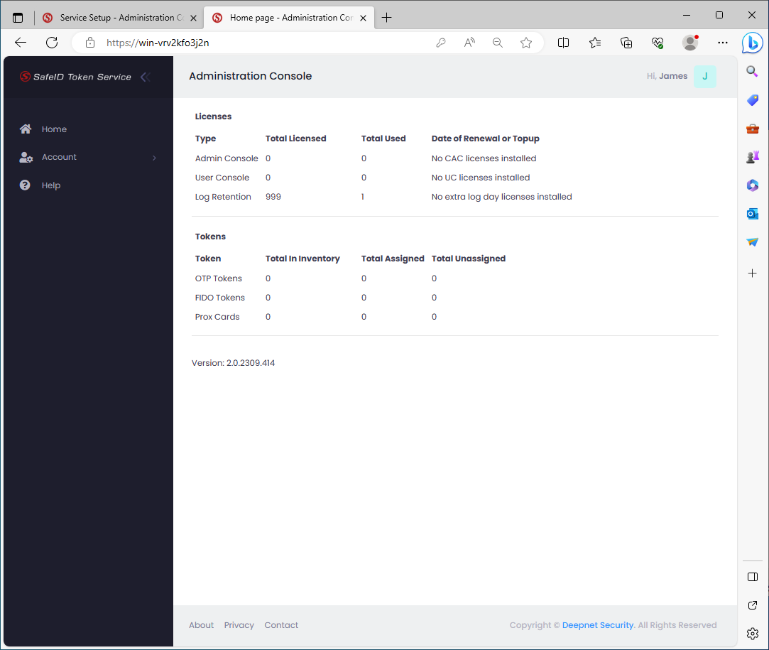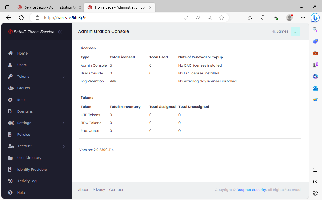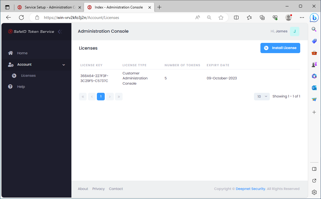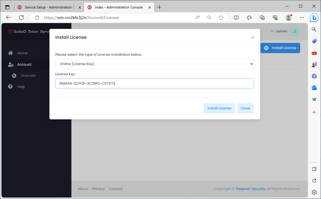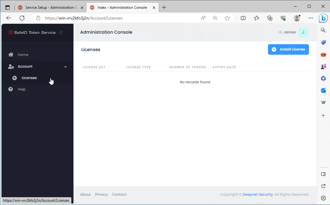 Before you can carry out any task in the SafeID Admin Console, you need to install a license key.