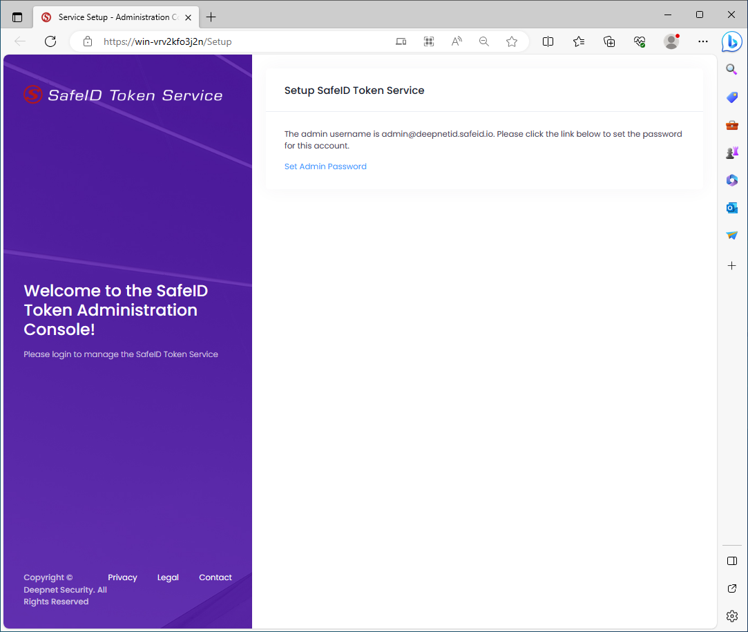 In this example, we use the machine name as the hostname of the SafeID Admin Console, e.g. WIN-VRV2KFO3J2N