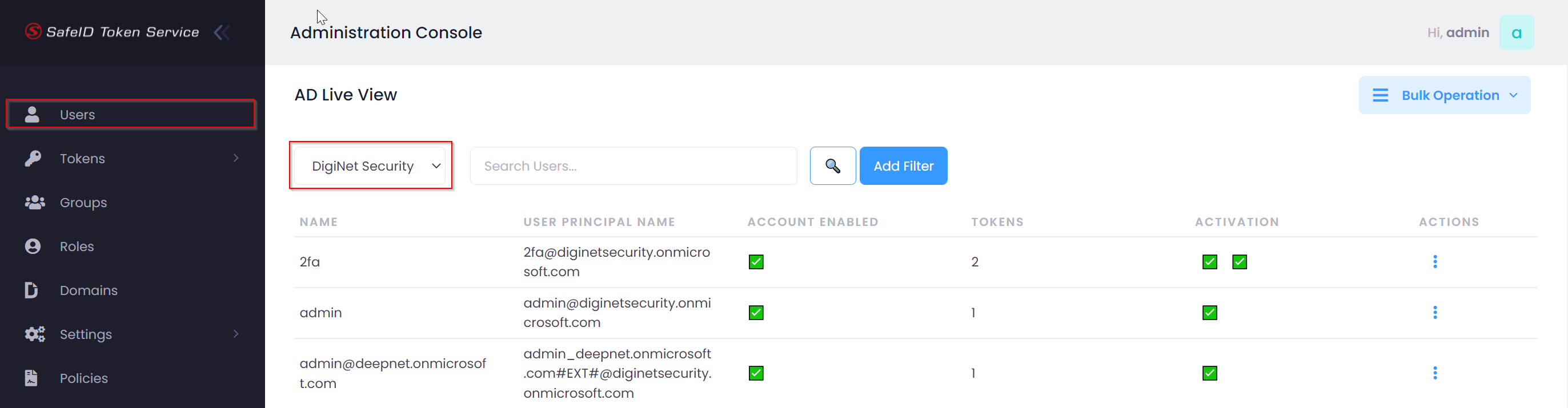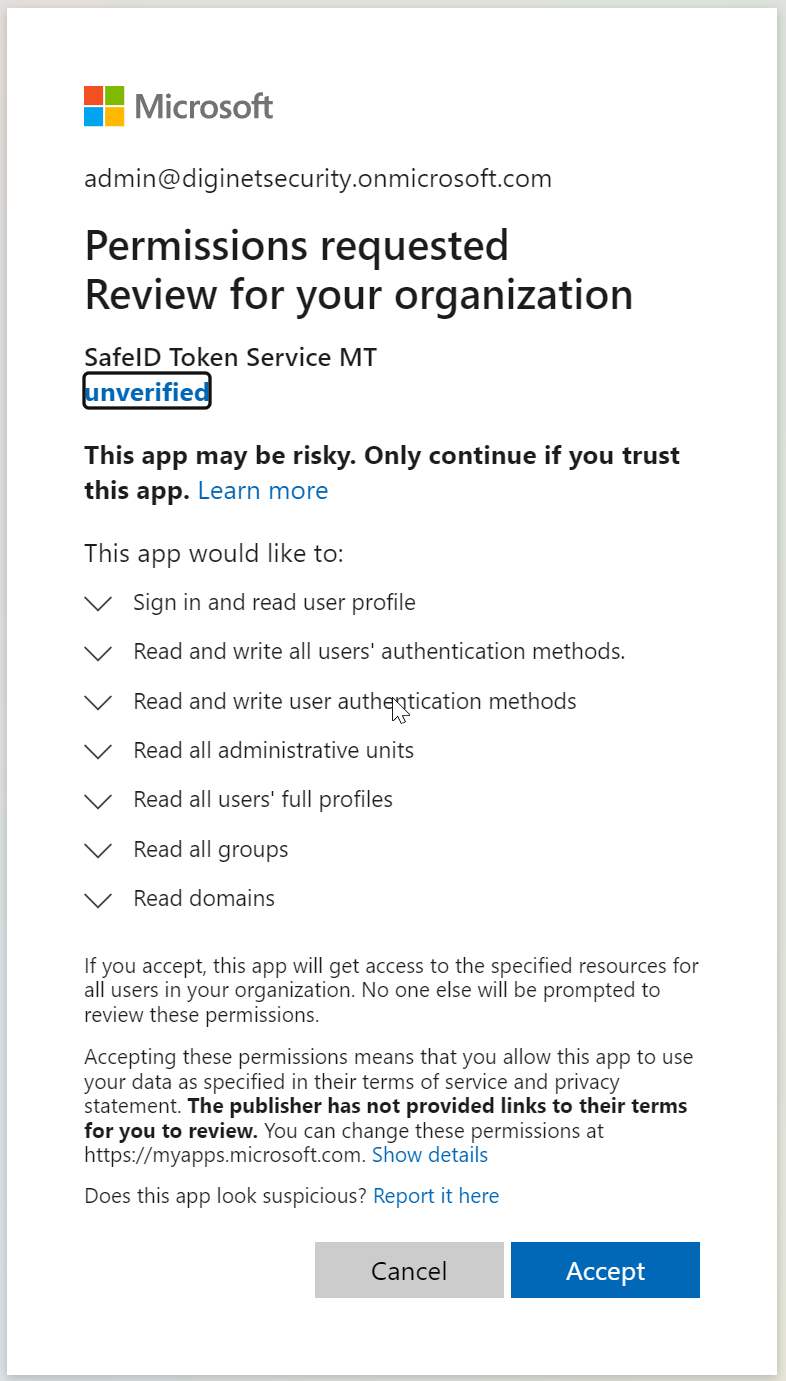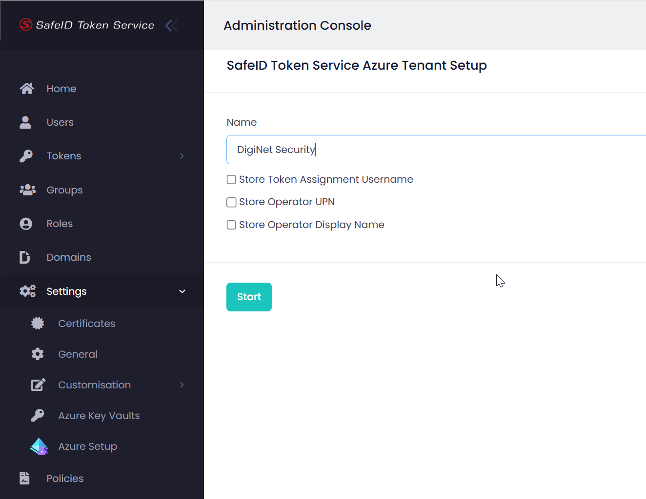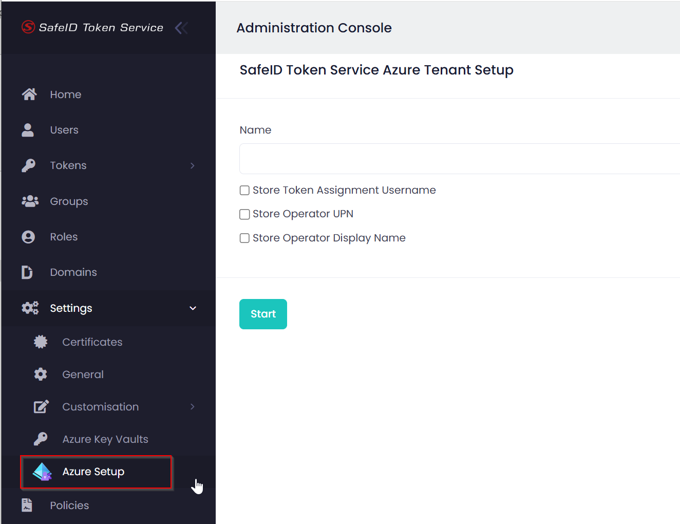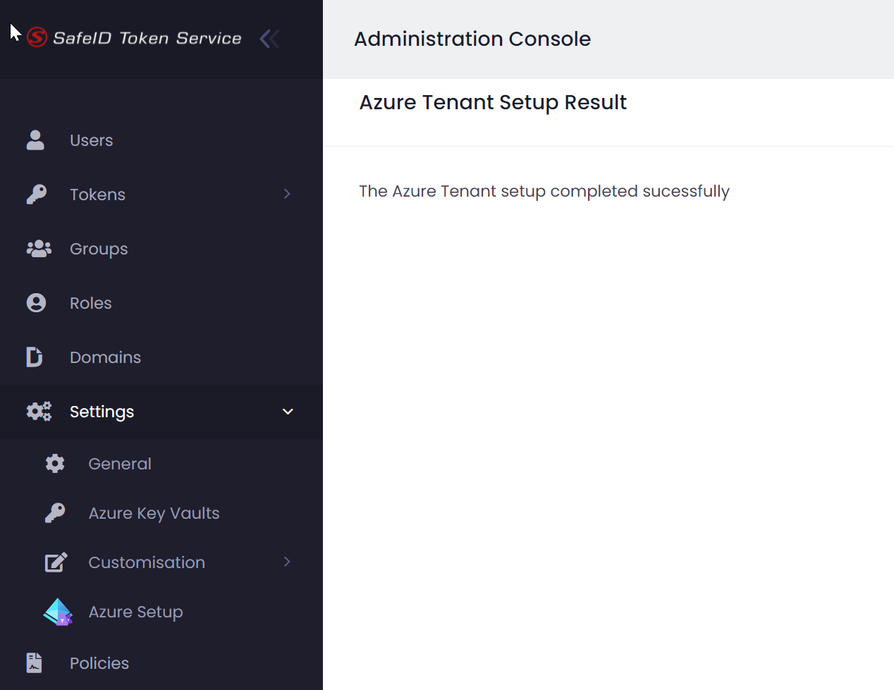 Sign into the SafeID Token Service console, navigate to Settings | Azure AD Setup
