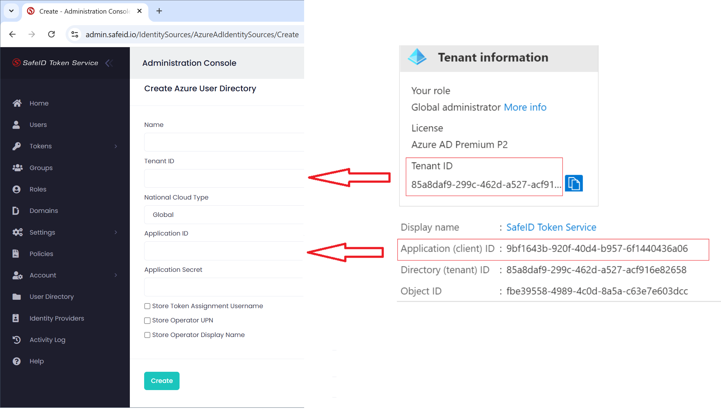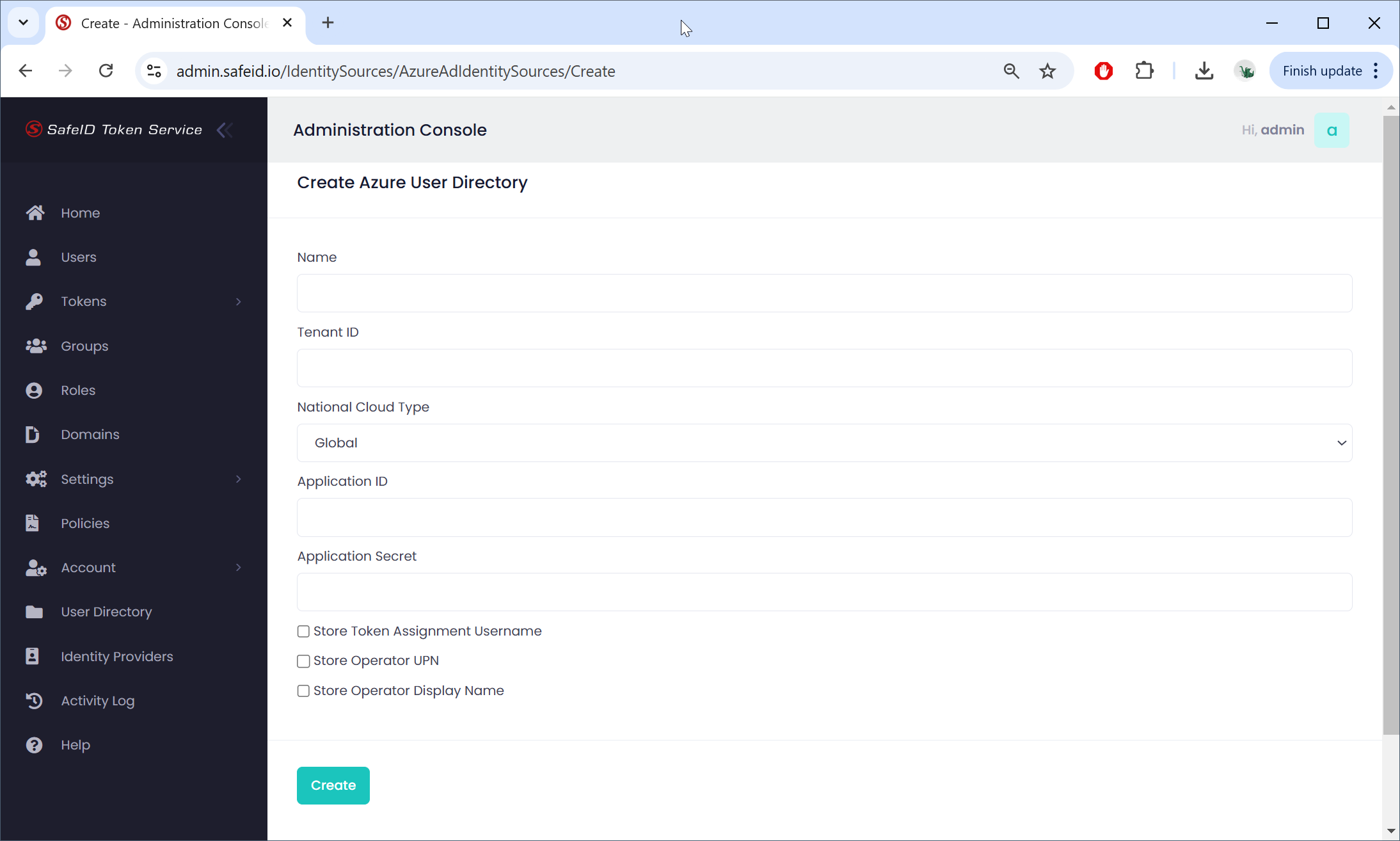 Login to the Admin Console of SafeID Token Service at https://admin.safeid.io