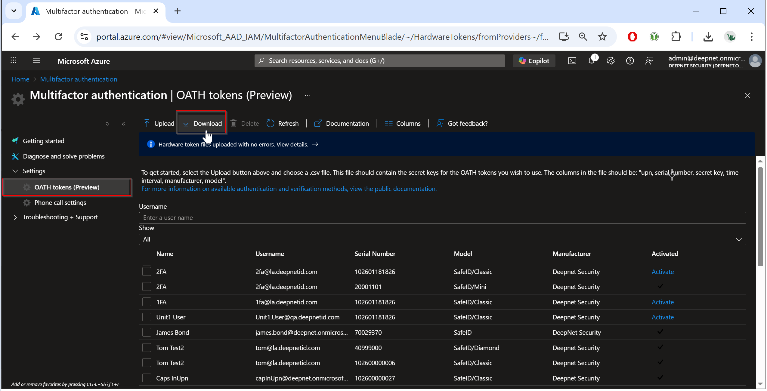 The SafeID Token Service has a local inventory system that also tracks the assignment status of each token. In some circumstances, the token assignment status can get out of sync with Entra ID. For instance, if a token was assigned or removed using the Entra Admin portal.
