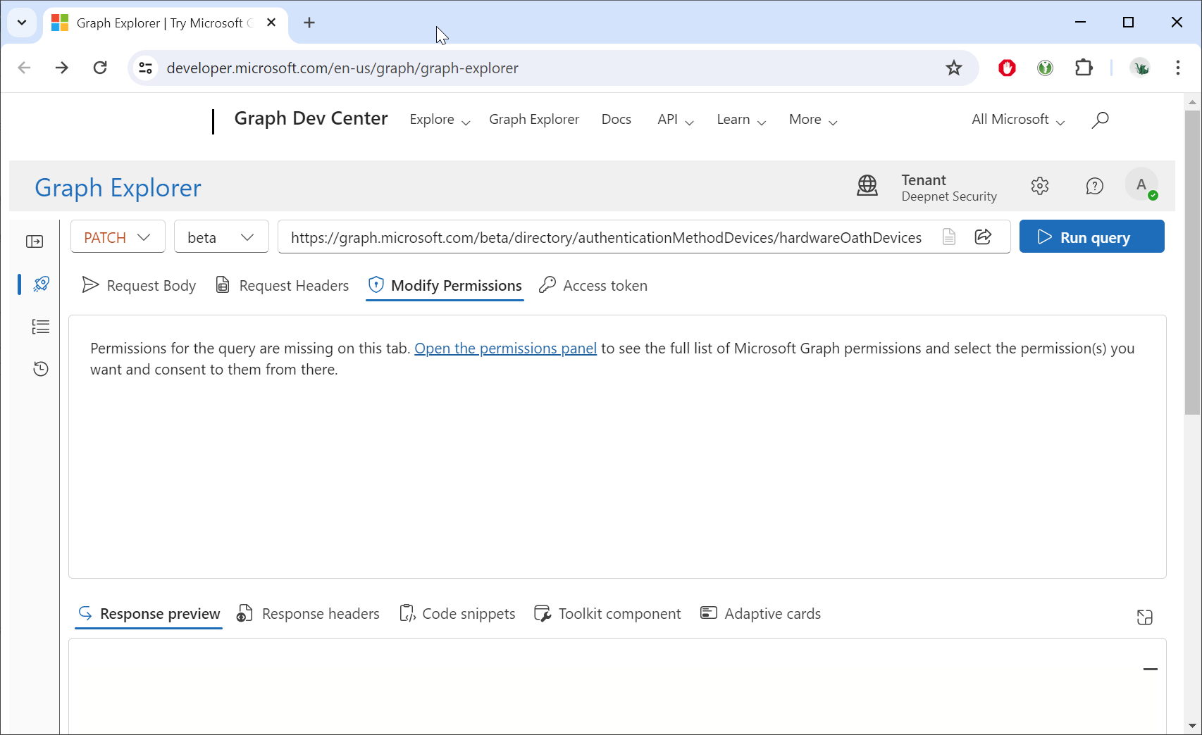 Now, click the "Modify Permissions" to check if you have the "Policy.ReadWrite.AuthenticationMethod" permission