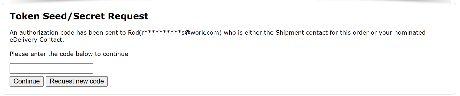 If you are not the person who is authorised to download the token secret/seed file, then an authorisation code will be sent to the authorised person.