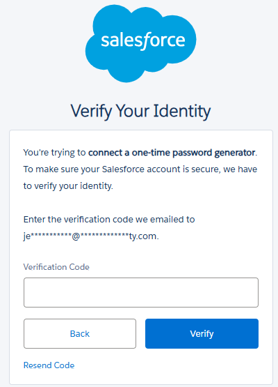 When you log in to your Salesforce account you will be asked to verify your identity.